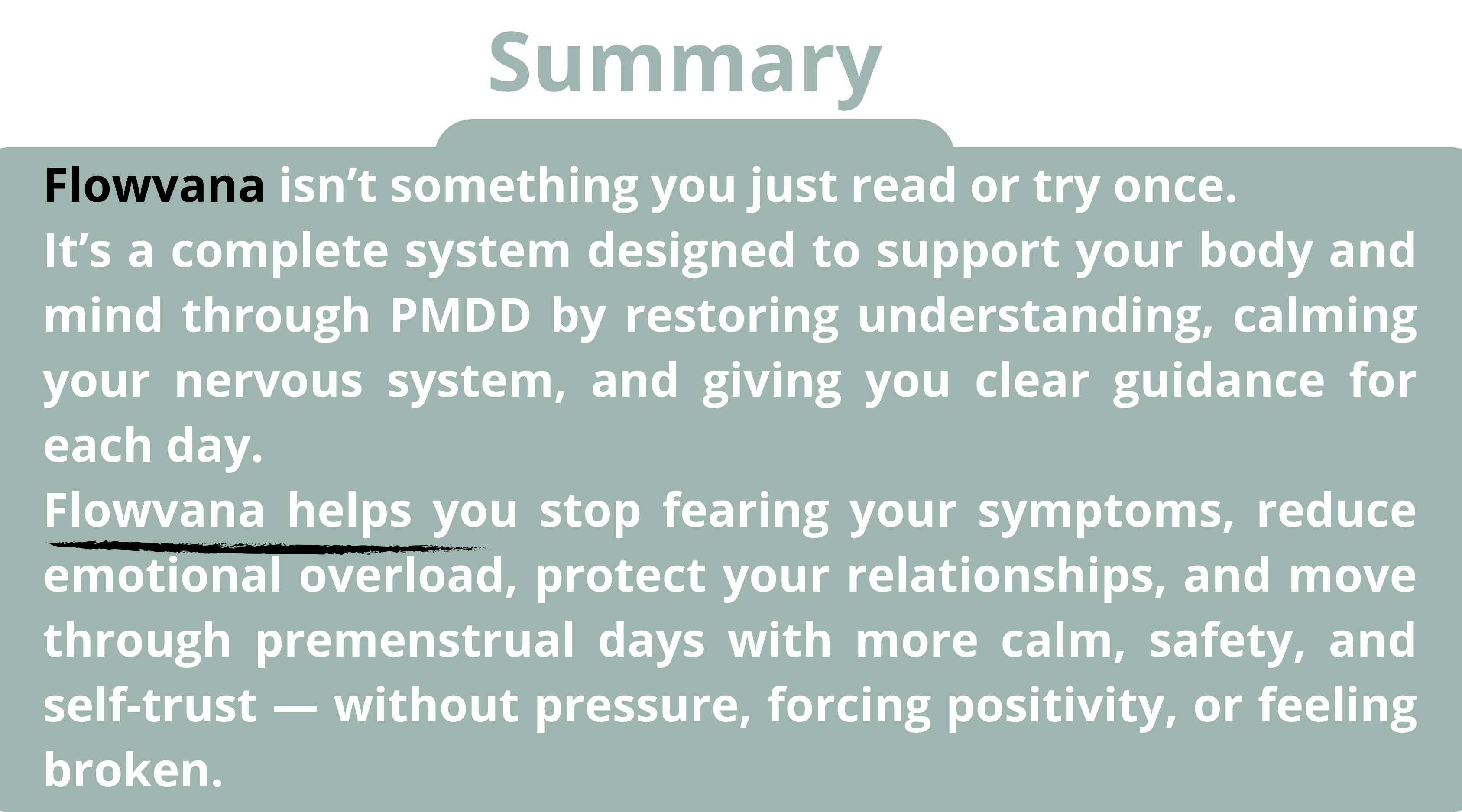 Yes. Flowvana isn’t built for one type of woman.It’s a system designed to adapt to your nervous system and your PMDD experience, not force you into a mold.It doesn’t promise zero symptoms, but it helps you stop being overwhelmed by them.
